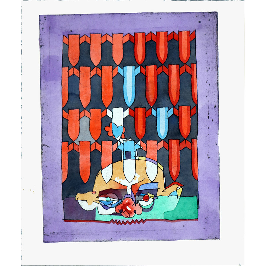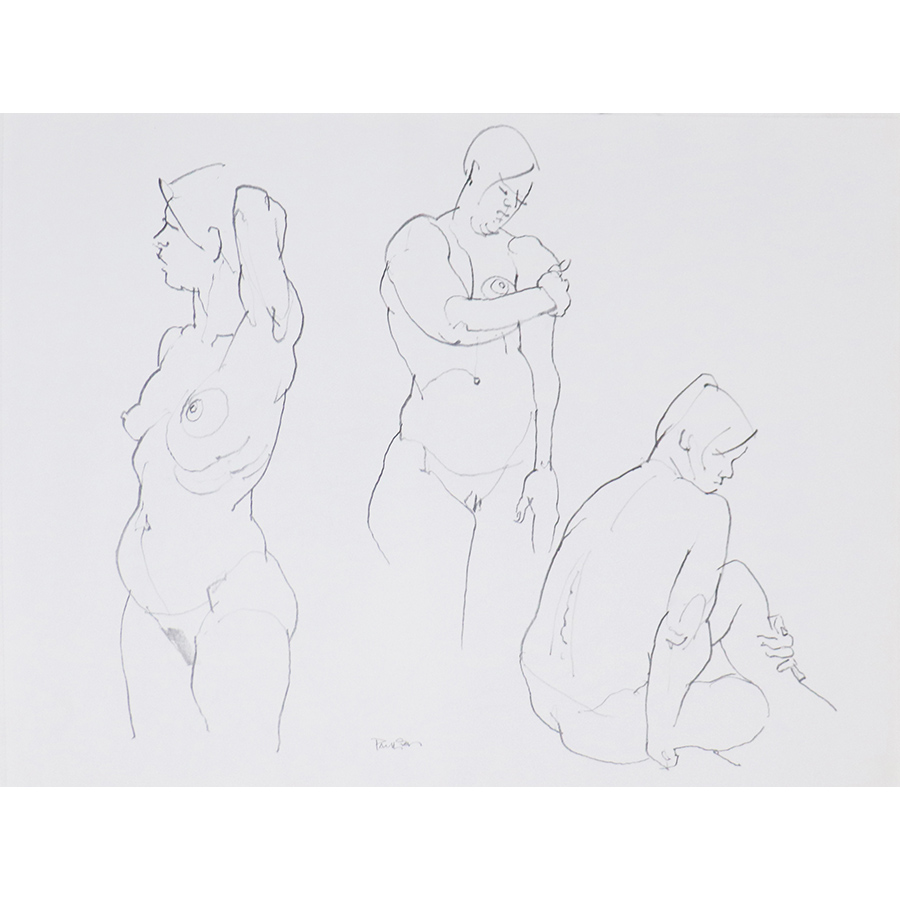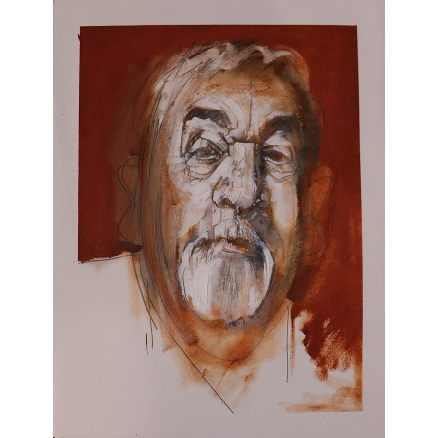 Paulson has created two series of new works for Figuratively speaking where he continues to explore the dynamics of the human figure. His art practice, spanning over 50 years, has been well documented in his 2019 catalogue Both Sides of The Creek. Paulson comments, “the 40 new hand-tinted collagraphs are redolent of “Life’s Little Ironies”, thoughts on the fabric of our tragic existence”. Alongside these works are 10, mixed-media portraits on paper. Paulson comments, “these works are about the observance of ‘time passing’ unhindered by the narcissism of youth”. Included are six self-portraits such as Self-portrait. Paulson continues his daily practice of life-drawing; there will be a dozen new works in stock. Three painted plywood cut-outs from 2016 are further testimony to the artist’s drawing skills and reverence for the human form.