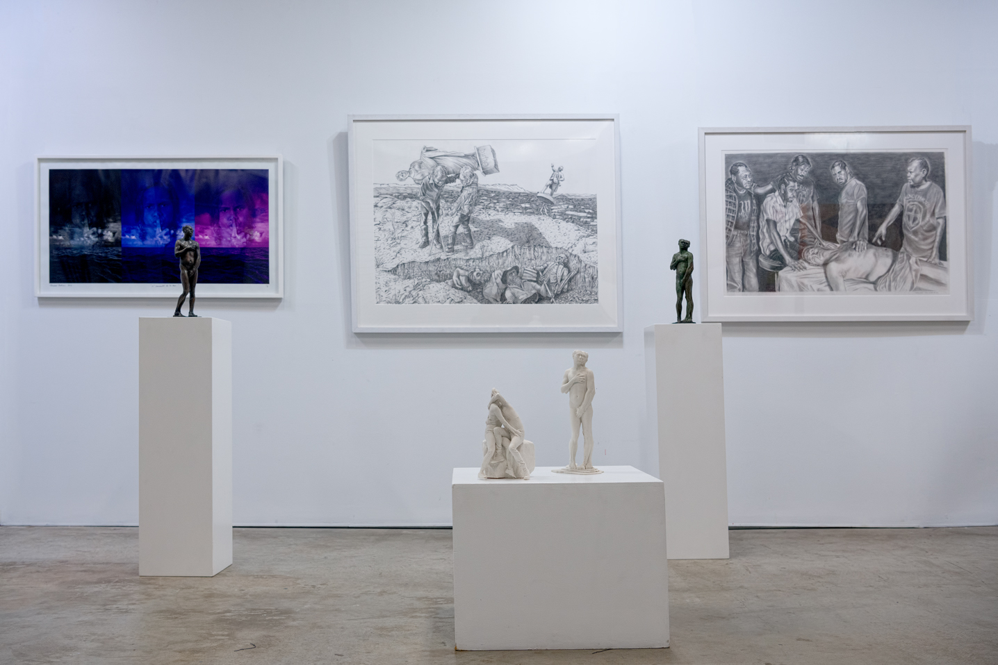 Figuratively speaking will present local artists David Paulson, Michael Eather, Itamar Freed and Scott Redford with artworks displayed alongside Fiona Omeenyo, Rod Moss, Ian Waldron, and Phil Gordon. Moss draws and paints portraits of himself as subject with the Arrernte people of Alice Springs such as in the The standoff. In contrast, works by Lockhart River/Cairns-based Omeenyo continue to explore the figure as family connection and ancestor spirts in new paintings and a bronze sculpture, Ancestral figures at Double Stone. Works on paper by Brisbane-based Eather and Redford, sculptures by Tasmania-based Gordon and Sunshine Coast-based Freed, as well as mixed-media works by Far North Queensland artist Waldron, further investigate the figure through a variety of mediums.