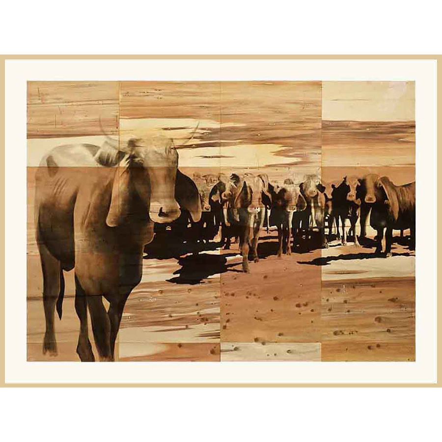 In an exhibition of new work titled The Gulf, Kurtjar artist Ian Waldron, showcases his oeuvre developed over many years of practice. About the show, Ian comments: Every work that I have ever painted is anchored in The Gulf one way or another. My art is the visual representation of my identity - I am my country. As a title, The Gulf is my homeland, but also an ambiguous reference to a chasm between two worlds. A collection of acrylic painting, print and sculpture/installation, this show portrays themes and motifs characteristic of Ian’s past work, such as portraits of rural life, symbols of heritage & ancestry and evidence of his early career, painting signage for supermarkets. The artist states, “Recurring motifs in my works comprise characters, sites and memories which are important to me, such as Bloodwood totem and native life on Delta Downs Station up in the Gulf of Carpentaria”.