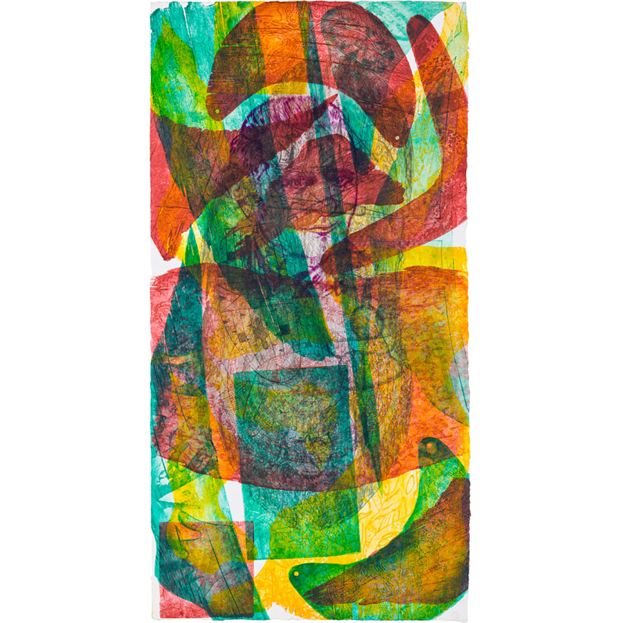 Joining the gallery in 2016, Paul Bong’s show, Past & Present: Sculpture and Prints features a range of rustic new bronze sculptures displaying elements of his signature rainforest shield designs. These will be displayed for the first time, alongside his handmade etchings and archival reproduction prints. Paul’s latest exhibition Past & Present draws its title from the 2022 book Etching Past & Present (Published by AndAlso Books) detailing the raw passion of his unique artistic practice. Paul’s sculptures and prints contain imagery of fragmented shields and artifacts alongside symbols of colonial regalia. These elements are meshed and layered in a frantic collage that simultaneously challenge, inspire and invite curiosity around the ongoing narratives of Australian settlement and frontier conflicts in Far North Queensland.