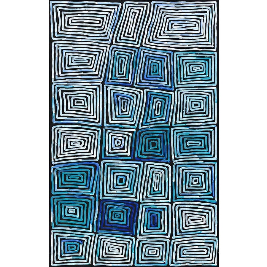 In Weather Patterns, Michael Eather’s curatorial approach - that artists from backgrounds Indigenous and non-Indigenous have much in common - is at the fore. It may seem an unusual conjunction to include Melbourne-based Matthew Johnson’s highly mediated abstract paintings with other patterned and rhythmic canvases that have their genesis in a more every day experience of weather. Rosella Namok’s large scale abstract paintings evoke the dampness of the wet season, their vertical rain saturated with north Queensland tropical colour. Ronnie Tjampitjinpa’s sinuous surfaces seek out the macro and microcosm of nature and the organic, in their depictions of rain, fire, and ceremony. For Johnson, Weather remains the kinetic makeup of atmosphere and his series of colourful pixelated abstracts analyse and meditate on the liminal line of the horizon, evoking states of transitory impressions, being and seeing. Yet Weather Patterns allows for a sensibility that successfully bridges these individual and perceptual gaps. The experience of being in the environment and its weathers is intrinsic to human experience of the world, and is felt in each of the canvases selected for this evocative exhibition.