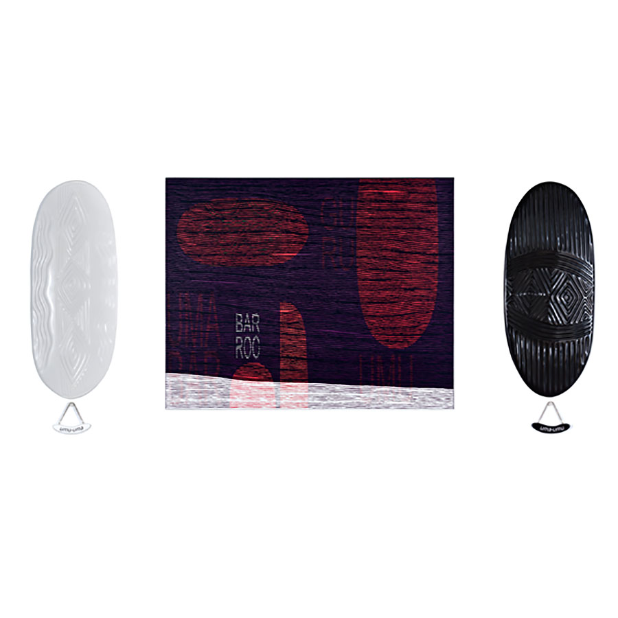 The growing complexity in Joanne’s work, its strong political resonance and its developing conceptual depth, bode well for this self-taught artist. Her process toward completion of these works includes using photographic prints of Mandandanyi shield designs with Gunggari text on the canvas (with archival inks) as a base. Over this imagery she develops a surface texture of river lines painted in acrylic. There is a new tension in these works, wrought by their new elements – they have a brittle sensibility that evokes the lack of resolution to the problems of regionally-based indigenous peoples in Australia.