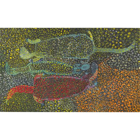 Ngintaka Mankur (three Perentie lizards) 2019acrylic on canvas91x151cmFW21890Artist: Reggie Uluru This artwork has been sold. Please contact us for similar works.Email Us, Visit Us, or Call Us at +61 7 3216 1250.